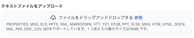 今回は「テキストファイルからインポート」を使います。対応しているファイル形式は以下のとおりです。