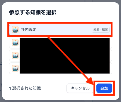 追加するナレッジベースをクリックし、追加します。