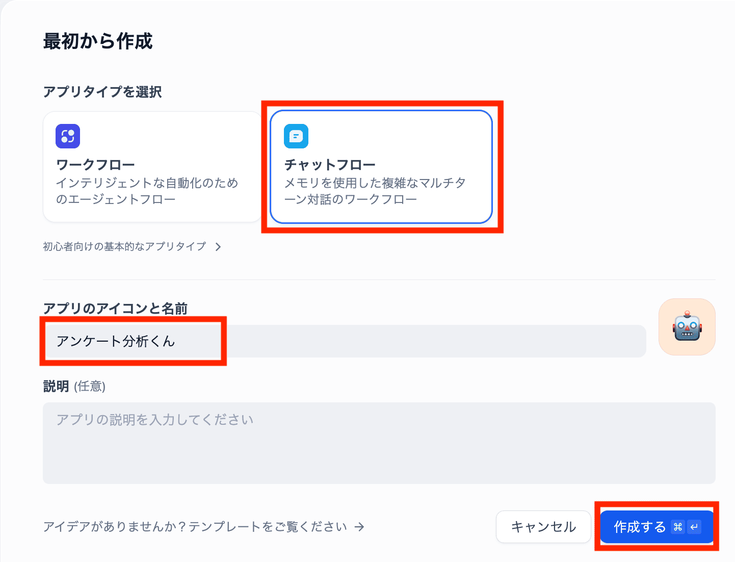 アイコンを任意で設定し、「作成する」をクリックします。