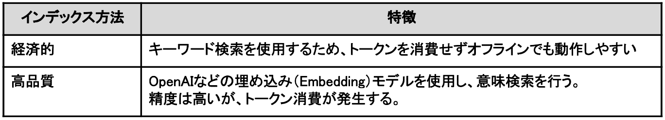 インデックス方法の「経済的」と「高品質」の違いは、以下のとおりです。