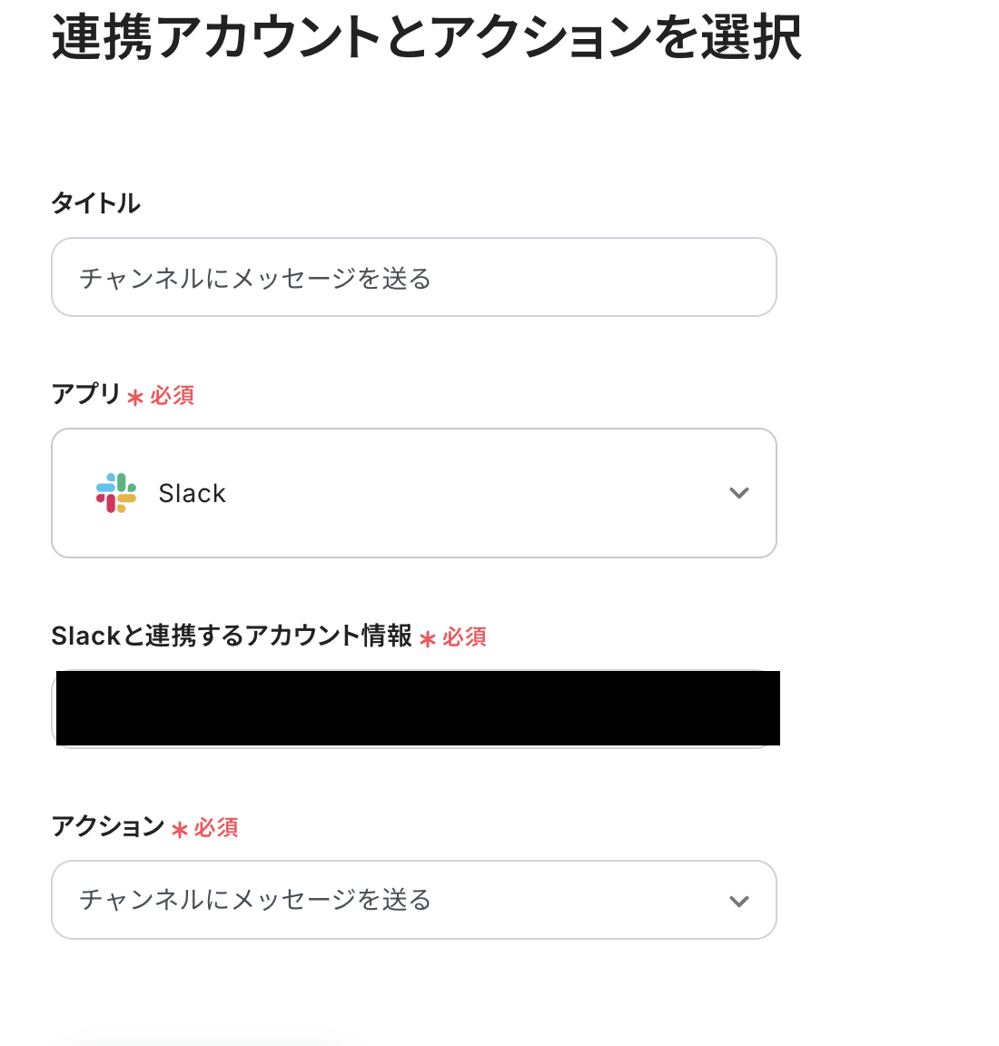 アクションは「チャンネルにメッセージを送る」が選択されていることを確認し、次へをクリックしましょう。