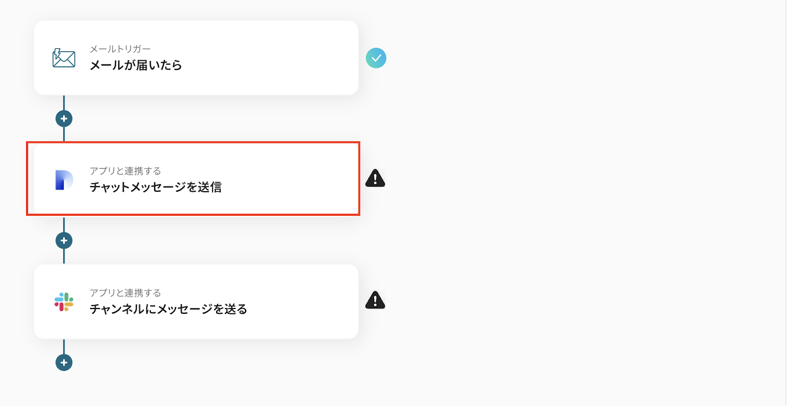アクションは「チャットメッセージを送信」が選択されていることを確認し、次へをクリックします。
