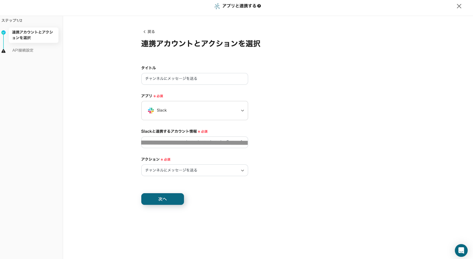 タイトルの任意編集とアカウント情報の確認を行い、「次へ」をクリックしてください。
