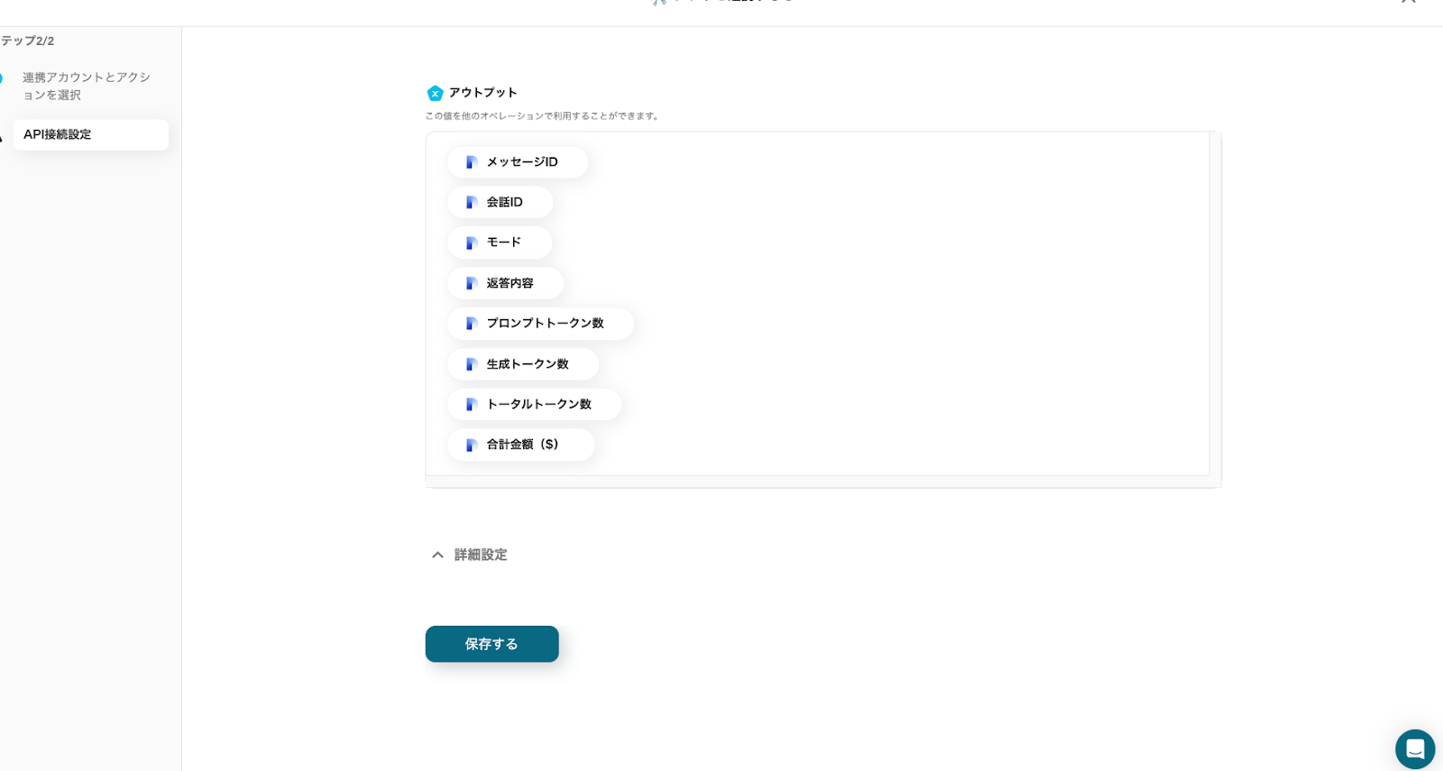 アウトプットに表示された情報を確認し、「保存する」をクリックしてください。