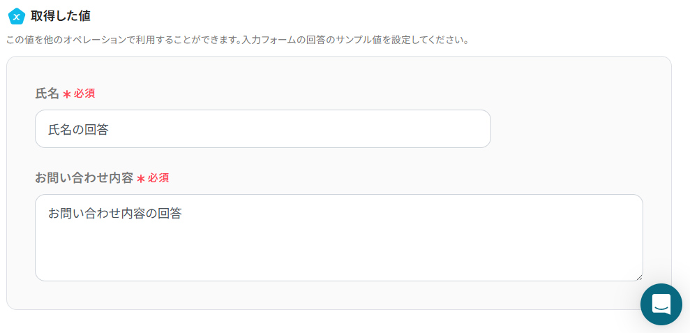 次のステップでテスト操作をするため、作成したフォームに回答を送信します。 今回は下記の通り、入力しました。