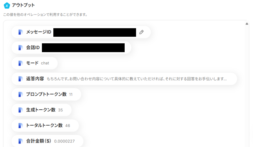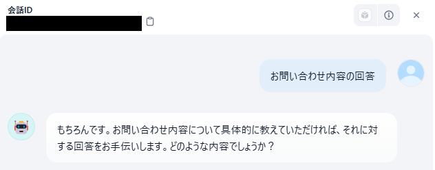 Difyで下記のようにAIの回答が確認できます。アウトプットの内容にDifyでの回答が反映されていることを確認してください。 最後に、Yoom画面に戻り「保存」をクリックします。