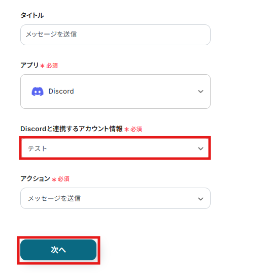 (5)設定が完了したら、テストを実行しDiscordにメッセージを送信します。