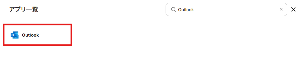 (1)「Outlook」と検索し、アプリ一覧からOutlookを選択します。