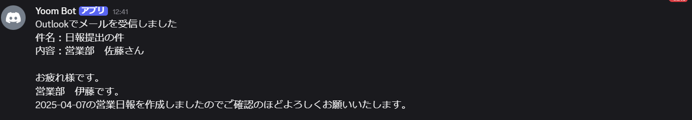 Outlookなどのメールアプリを起点に、Discordに自動で送信・転送するフローです。