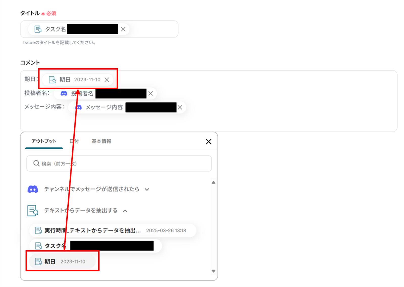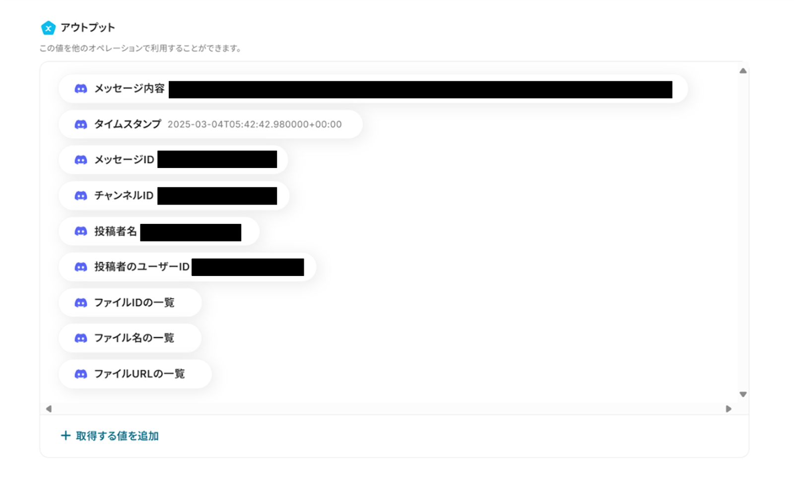 アウトプットを使うことで、アプリトリガーで取得した情報を引用することができます!