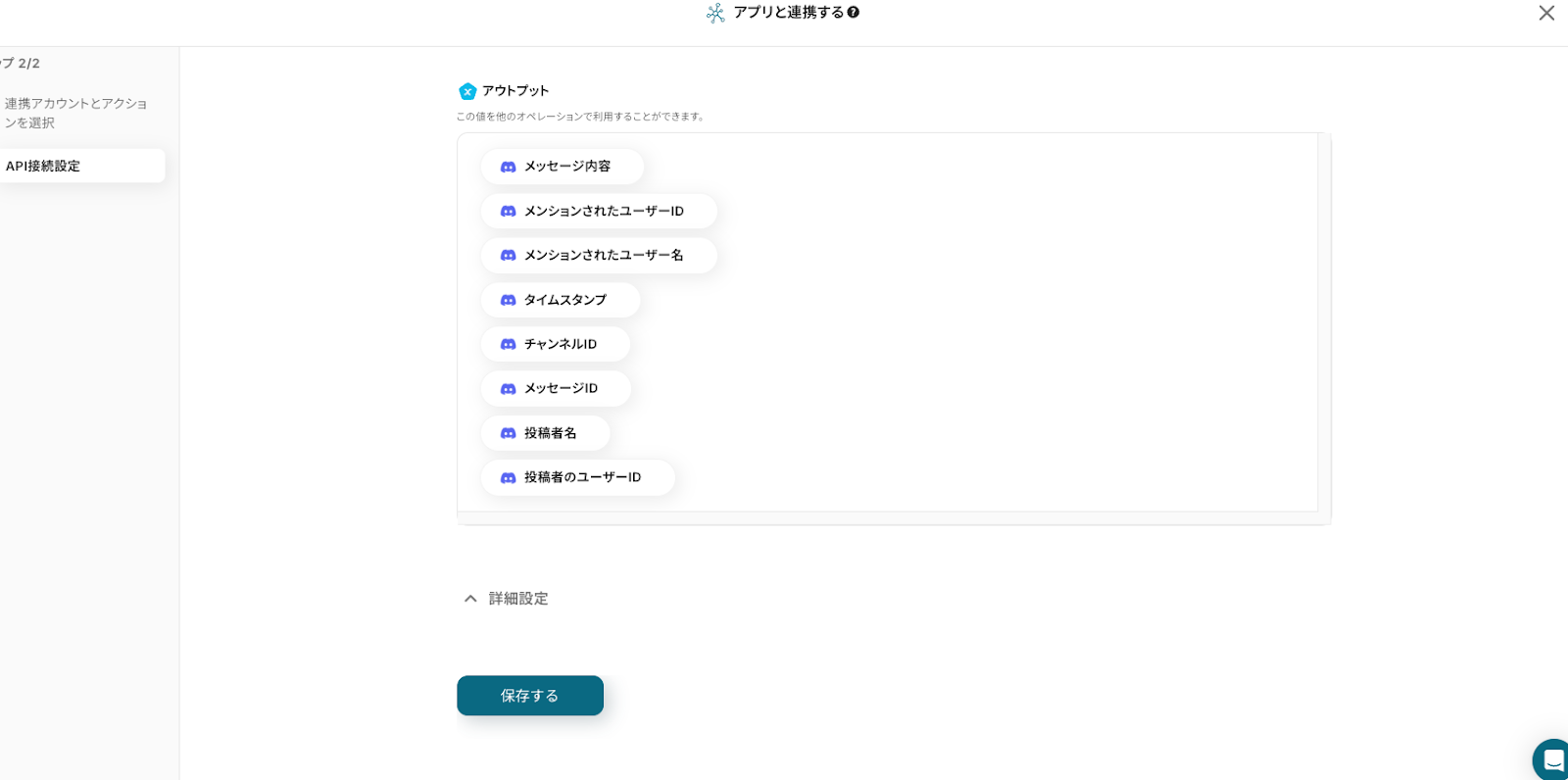 Discordの対象チャンネルとアウトプットを確認し、「保存する」をクリックしてください。