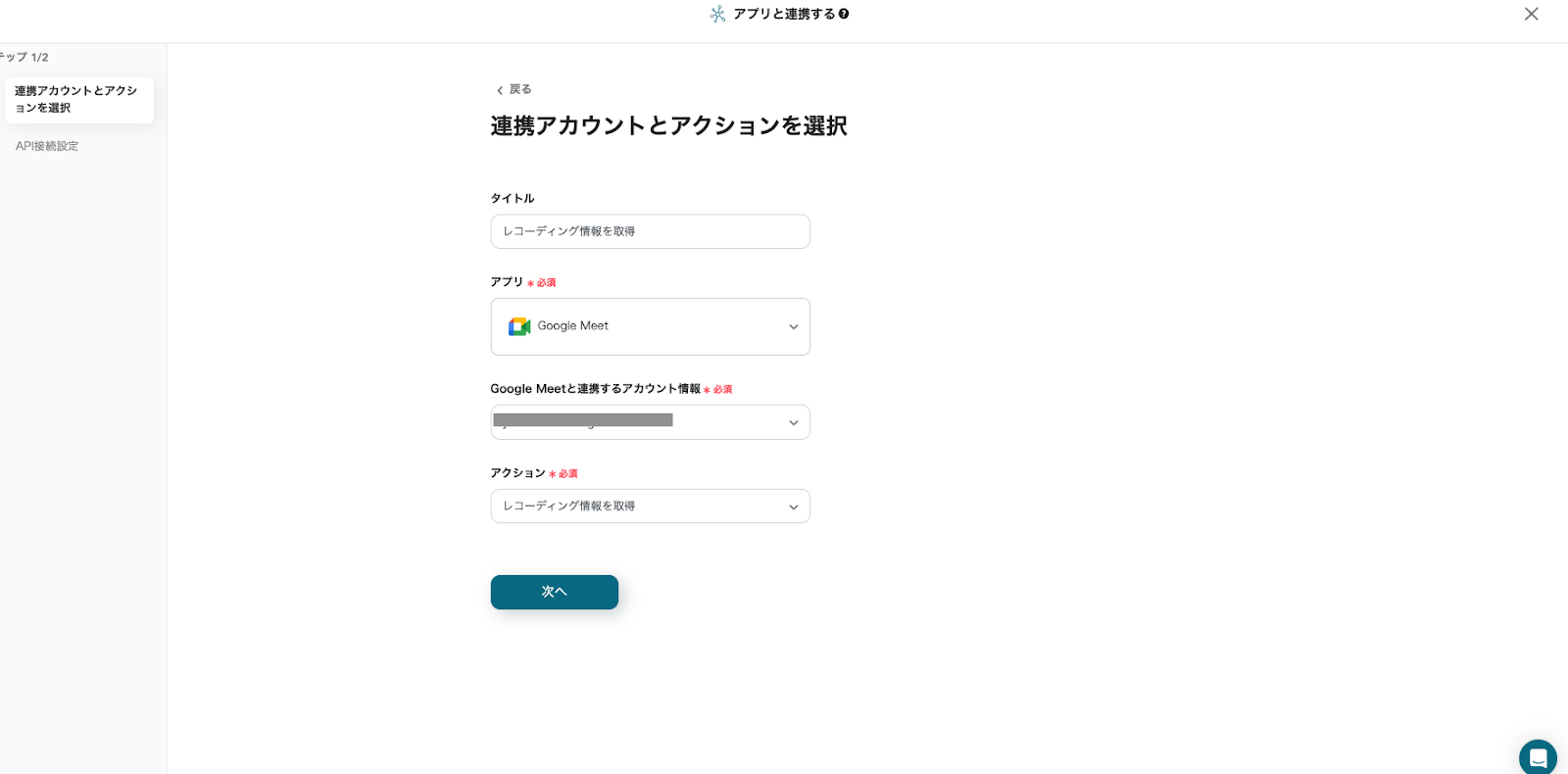 続いて、Google Meetから会議のレコーディングデータを取得する設定を行います。