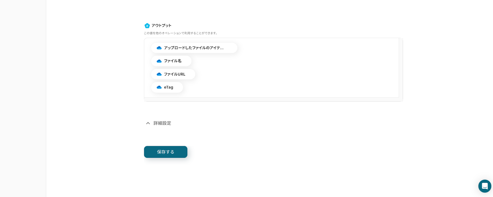 OneDriveとアウトプットを確認し、「保存する」をクリックしてください。