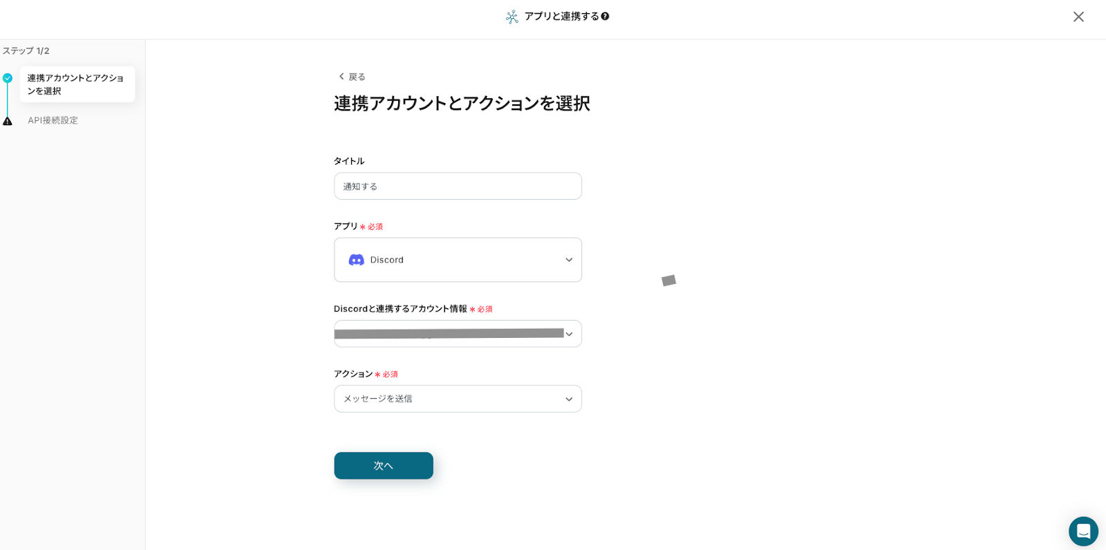 タイトルの任意編集とアカウント情報の確認を行い、「次へ」をクリックしてください。