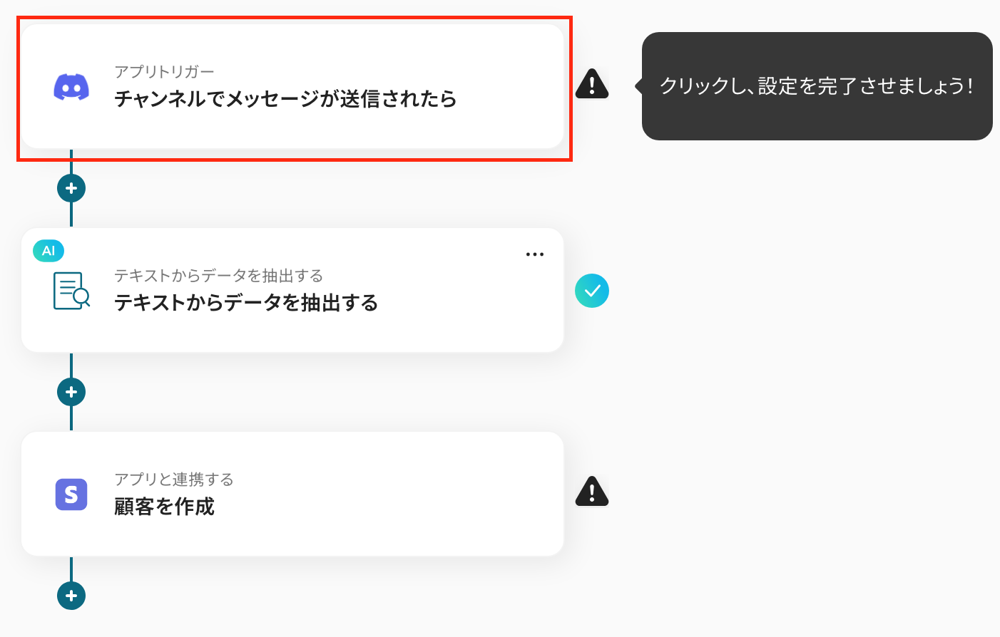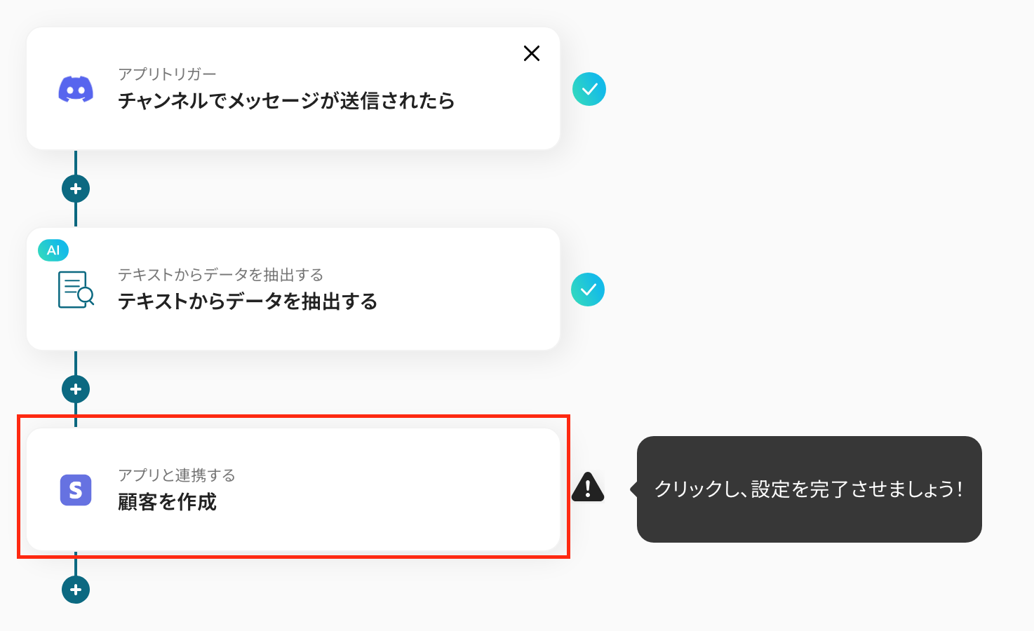 「Discordの投稿内容をもとにStripeで顧客を作成する」フローは、Discordでのユーザー活動を活用してStripeに自動的に顧客情報を登録する業務ワークフローです。