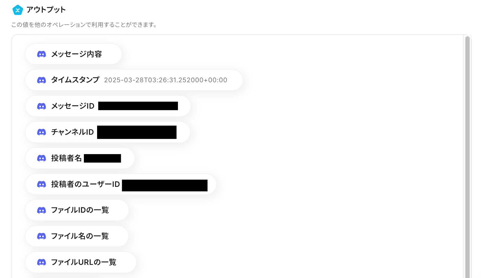 顧客名の入力やメールアドレスなどには先ほど取得したDiscordのアウトプットを選択できます。
