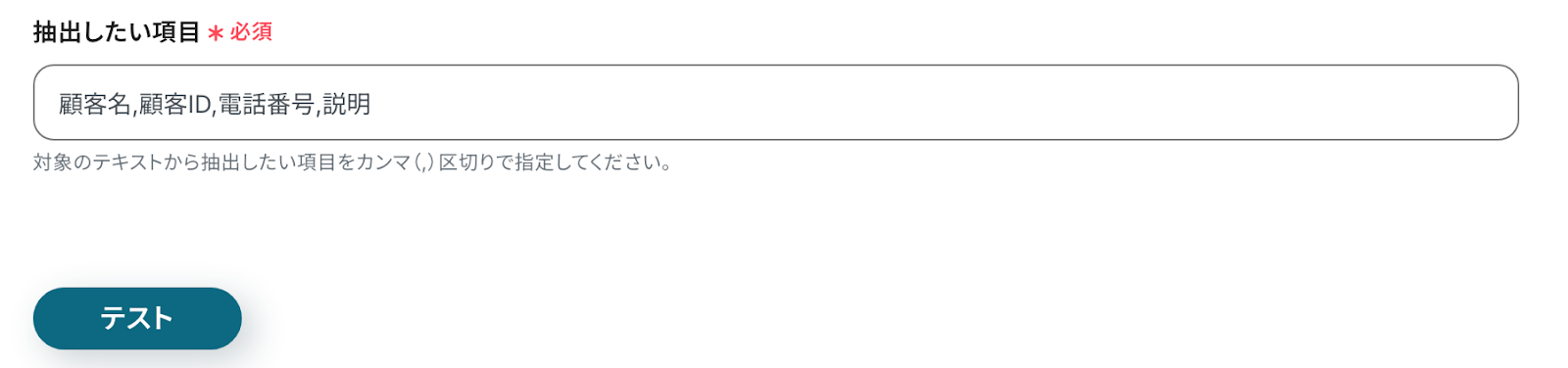 今回はデフォルトで顧客名、ID、電話番号などを抽出します。