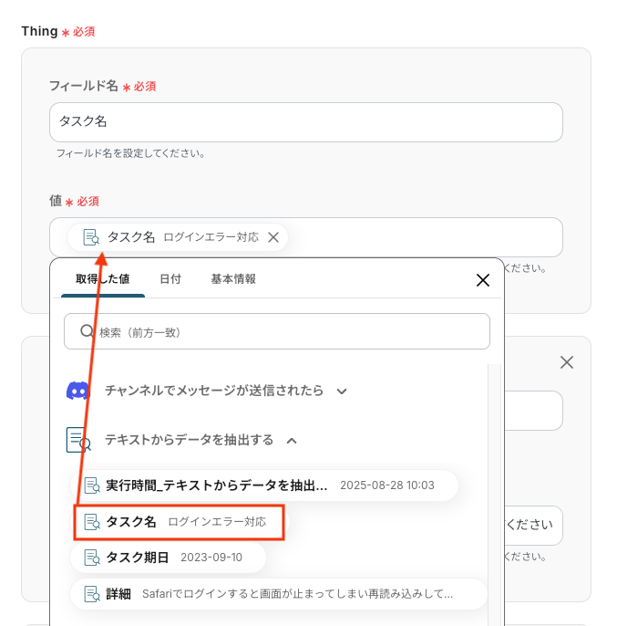 以下の画像の取得した値(=アウトプット)をもとに、次のステップでAI機能を用いて、BubbleのThing作成に必要なデータを抽出できます。