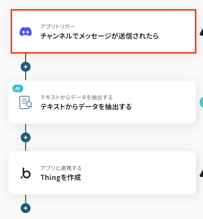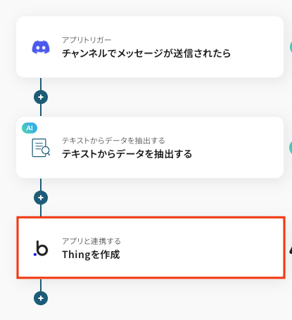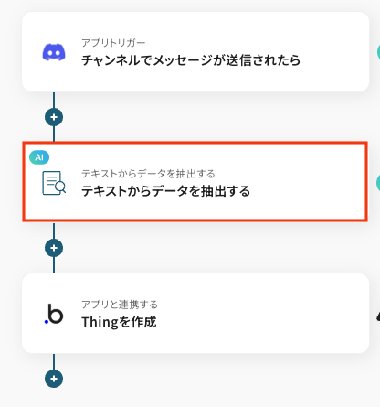 ここでは、Bubbleに登録するデータをDiscordのメッセージから抽出する設定を行います。なお、この設定にはAIによるデータ抽出を活用します。