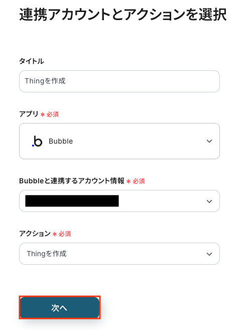BubbleでThingが作成されたらGmailでメールを通知するフローです。