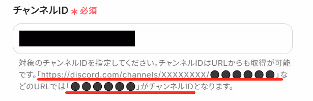 「チャンネルID」も同様に、DiscordのURLから抽出しましょう。
