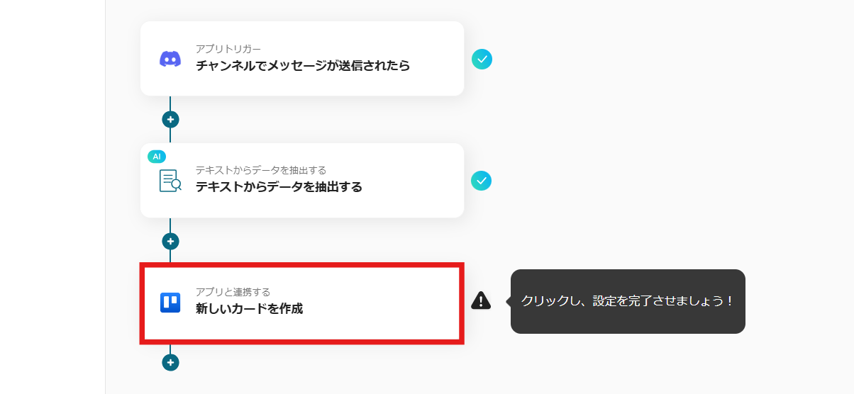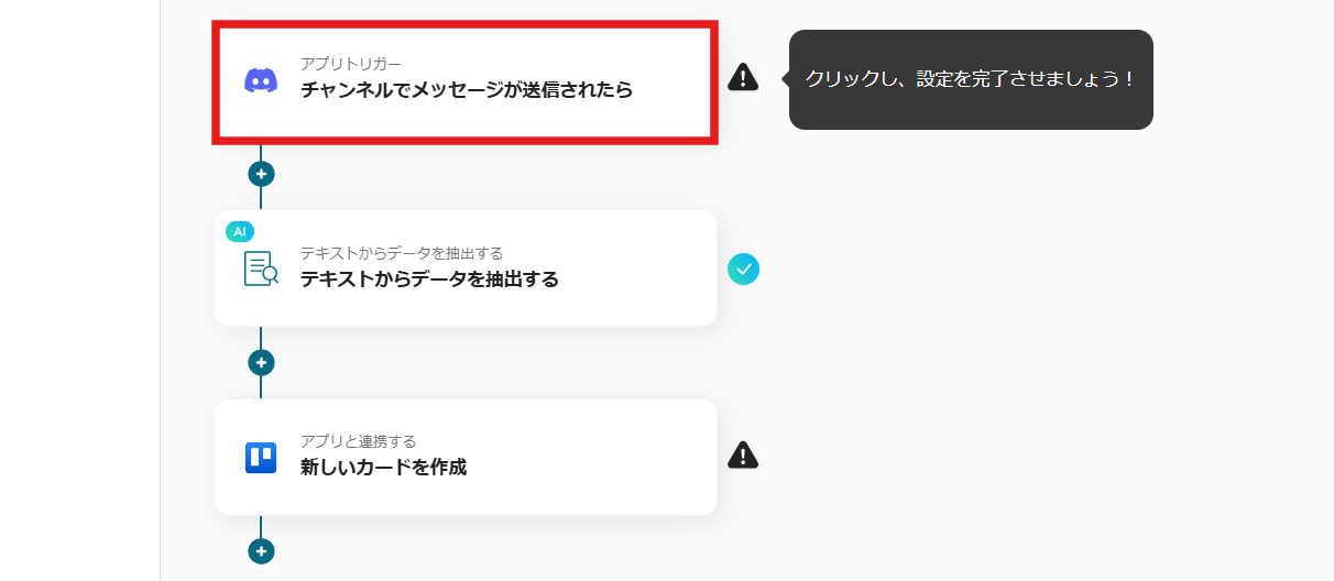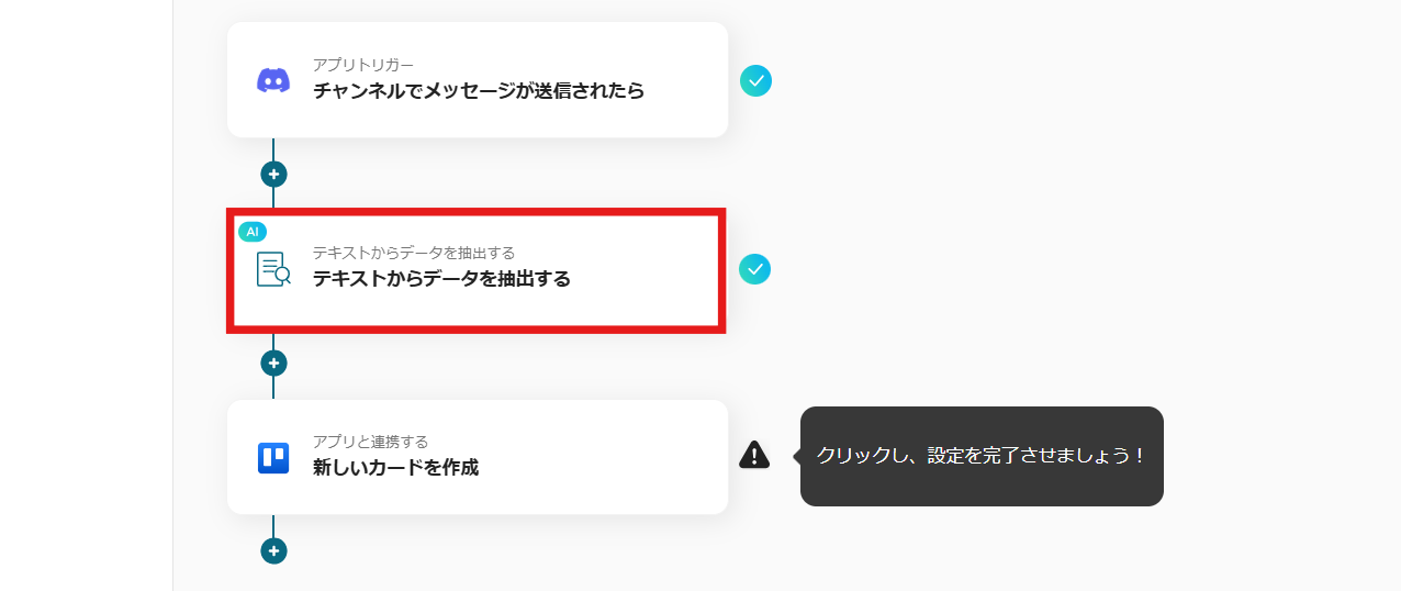 これで、【Discordでタスク情報が投稿されたらTrelloへカードを追加する】というフローが完成しました。