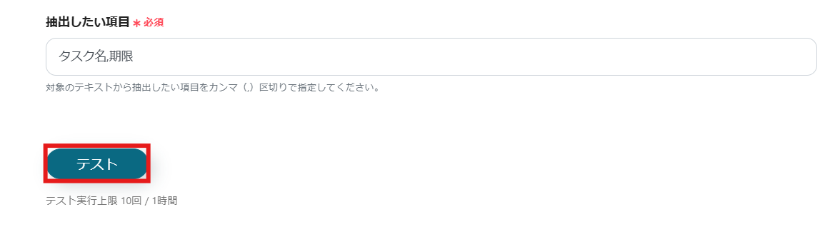 6.対象のテキストと抽出したい項目は元から設定されています。