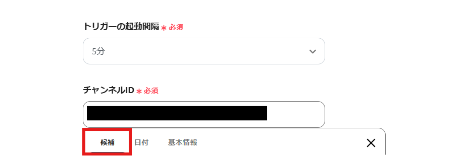 3.トリガーの起動間隔とチャンネルIDを設定します。