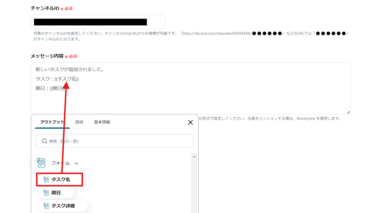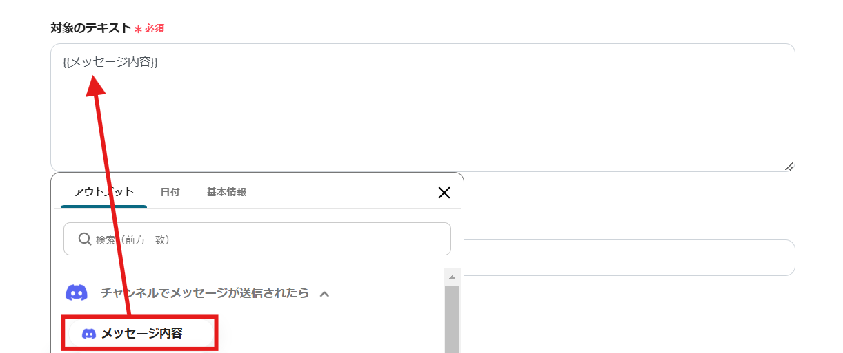 今回はDiscordの投稿から抽出するので、「メッセージ内容」を引用しています。
