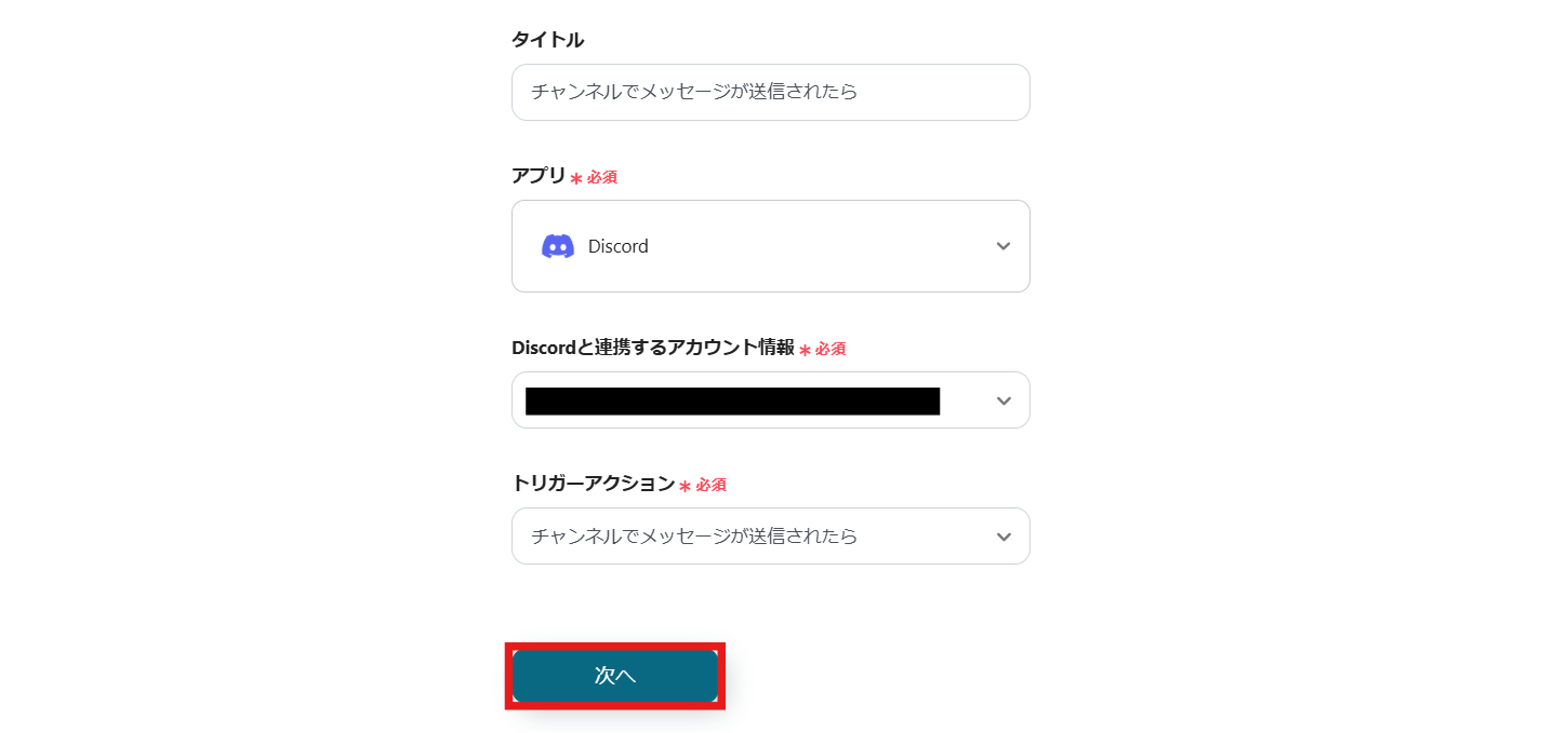 Discordとのアカウント連携やアクション設定の画面に切り替わるので、そのまま進むと、以下のような画面が表示されます。