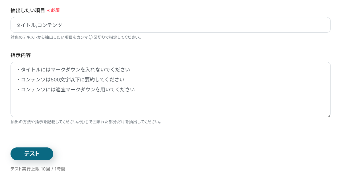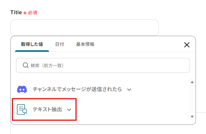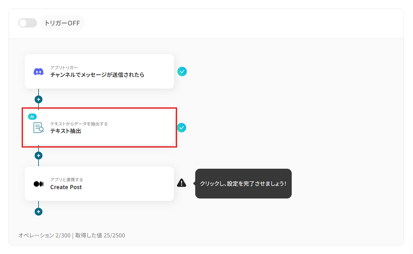 - Discordのトリガー設定と各アクション(データ抽出・ポスト作成)の設定