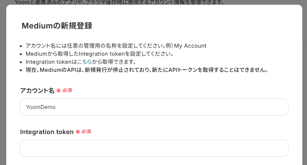 ・Discord、MediumのそれぞれとYoomを連携してください。