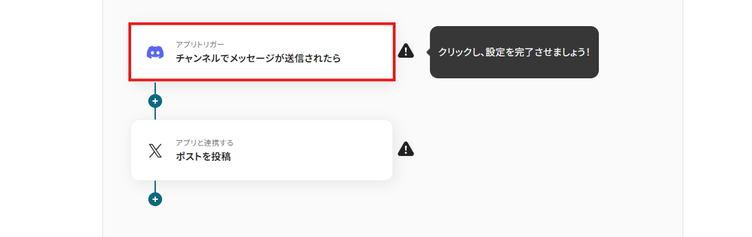 - Discordのトリガー設定およびX(Twitter)のアクション設定
