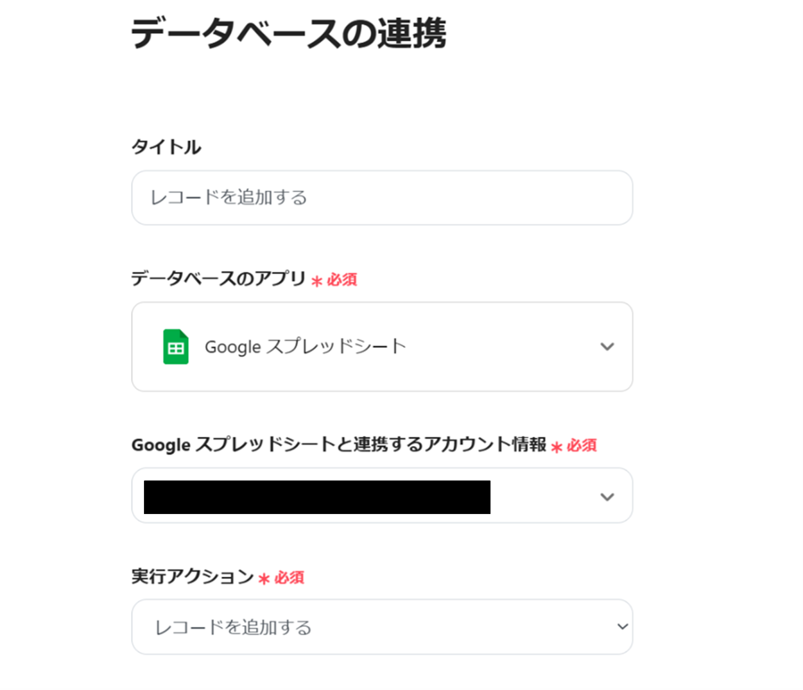 (1)次に、Google スプレッドシートと連携してレコードを追加します。