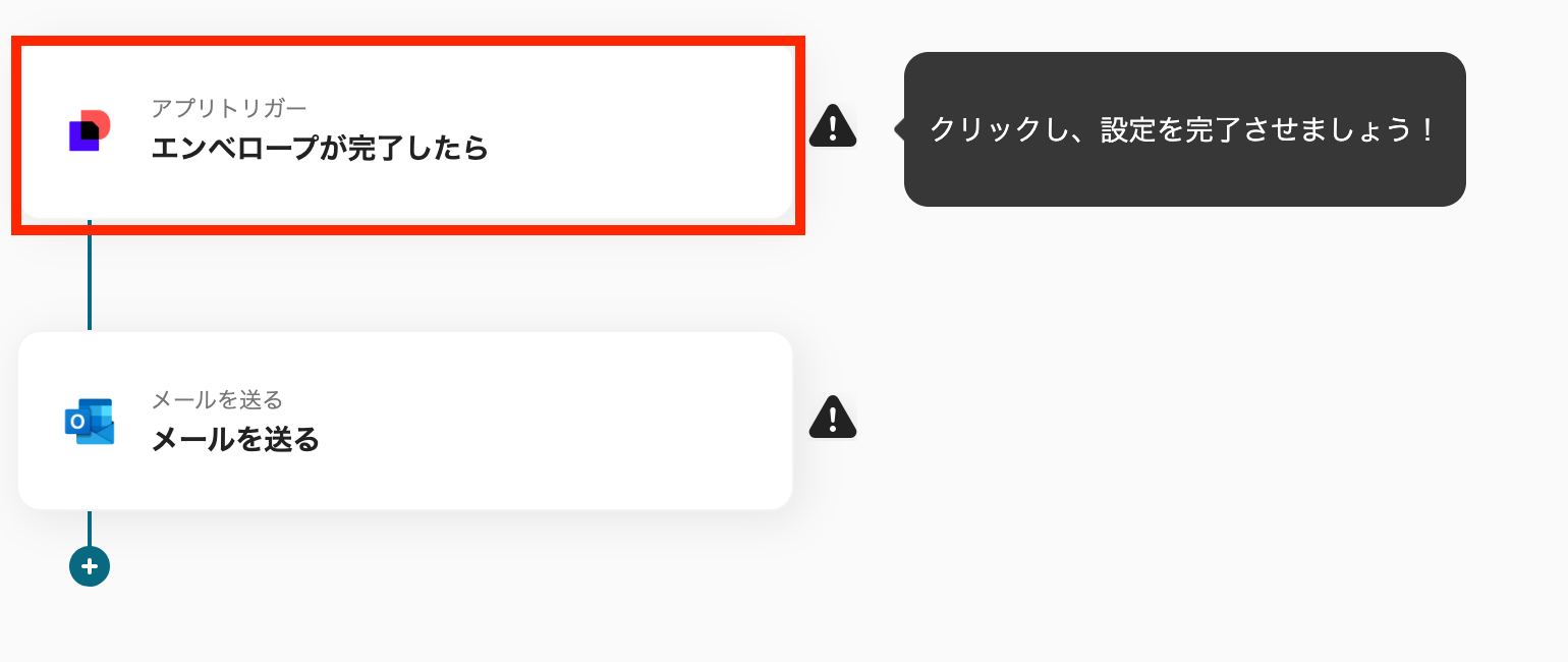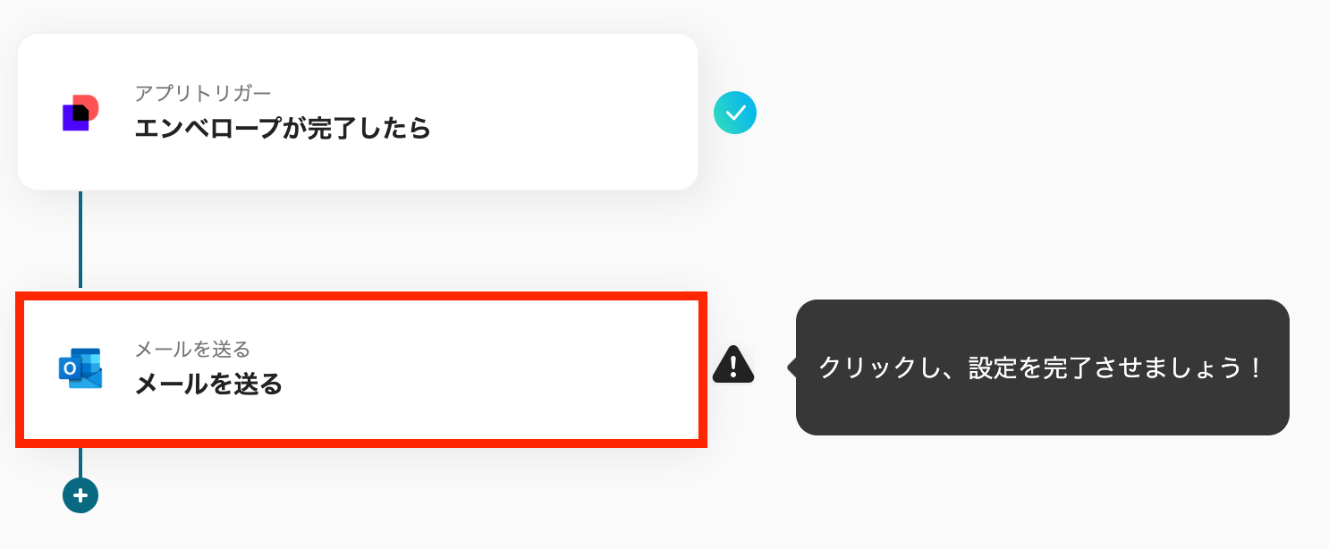 具体的には、DocuSignで契約が完了したらOutlookでメールを自動送信するフローです。