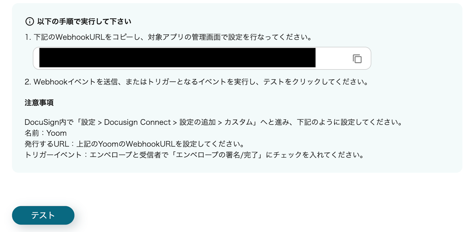 設定が完了したら「テスト」をクリックして、エラーの有無を確認してください。