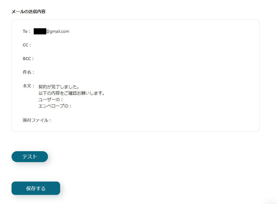 今回ご紹介する自動連携を活用すると、事前に登録したアドレス宛に契約完了のメールが自動送信されます。