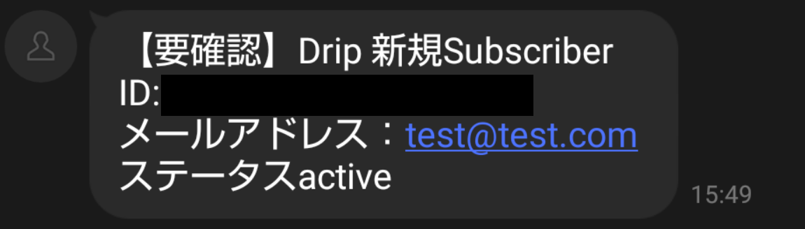 これでDripにSubscriberが作成されると、顧客の内容が自動でLINE公式アカウントから任意の相手に通知されるようになりました。