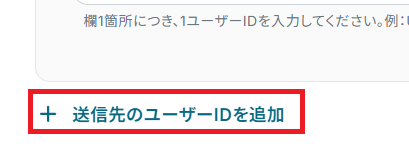 送信したいユーザーが複数人いる場合は、「+送信先のユーザーIDを追加」をクリックして人数分のユーザーIDを入力しましょう。