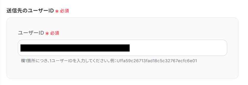 次に、LINE公式アカウントの送信先となるユーザーIDを入力しましょう。