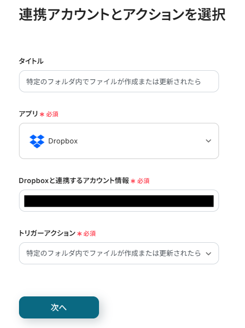 ステップ3:Dropboxのトリガーアクション設定