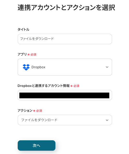 ステップ4:Dropboxからファイルをダウンロードする設定