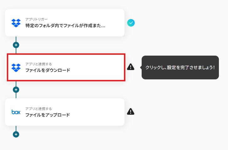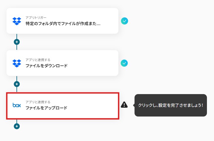 このワークフローを活用すれば、Boxの特定フォルダにファイルがアップロードされるだけで、自動的にDropboxへファイルが転送されるため、こうした課題をスムーズに解消できます。