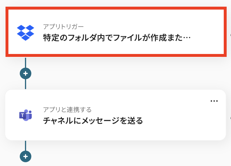 - Dropboxのトリガー設定およびMicrosoft Teamsのアクション設定