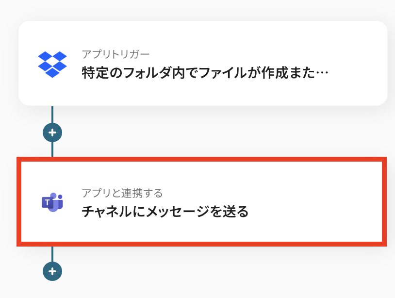 そこでこのワークフローを使ってDropboxの指定フォルダに新しいファイルが追加された際にMicrosoft Teamsに自動で通知を送ることができ、スムーズな情報共有が行えます。
