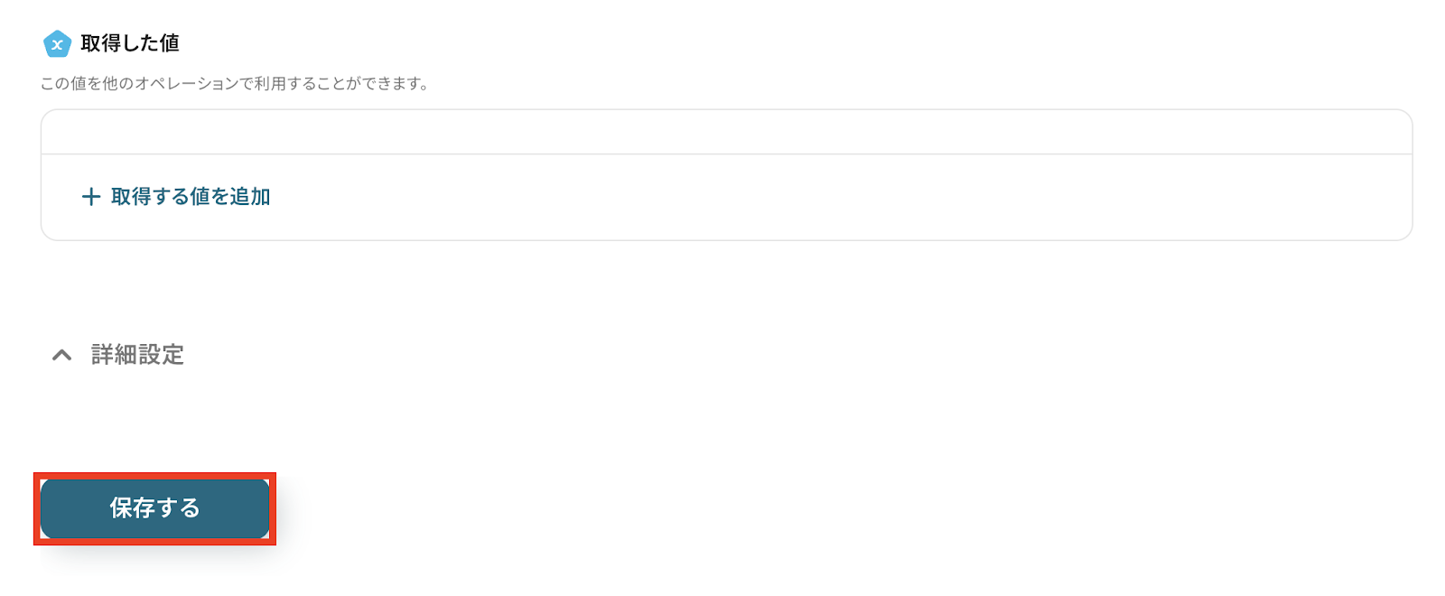 Yoomの操作画面に戻り、取得した値を確認し「保存する」をクリックします。