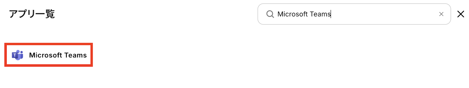 新規接続を押したあと、アプリのメニュー一覧が表示されるのでMicrosoft Teamsと検索し対象アプリをクリックしてください。