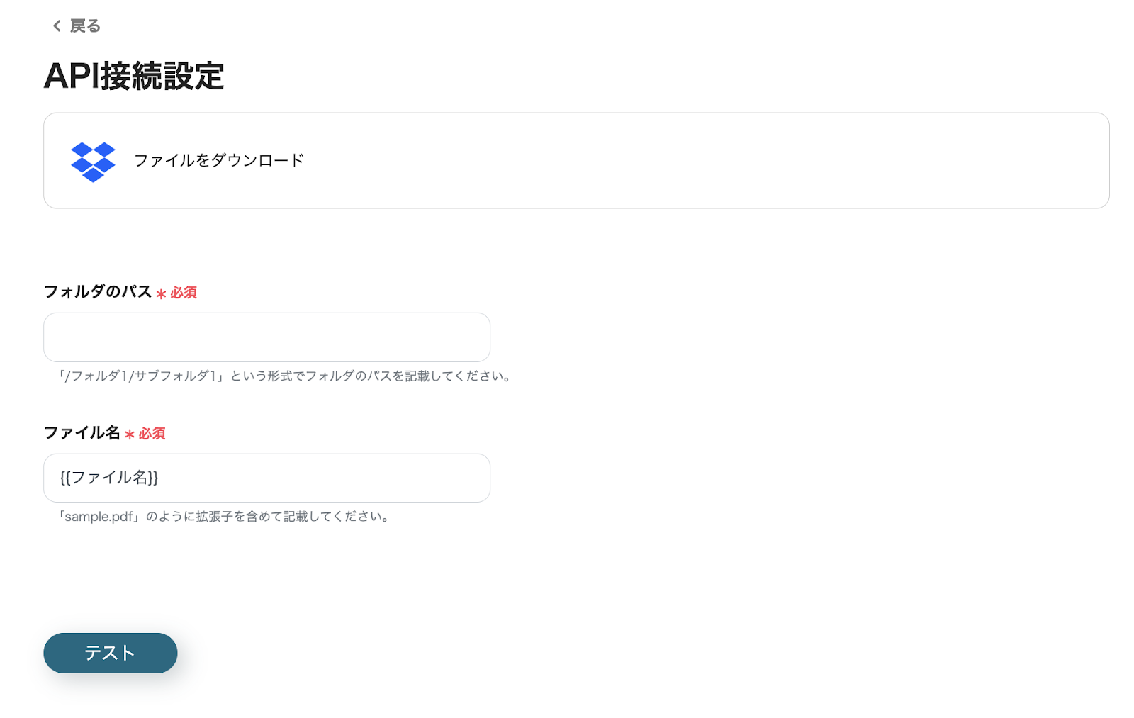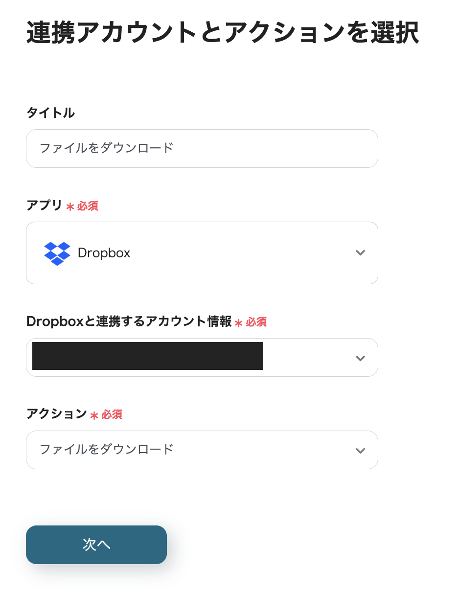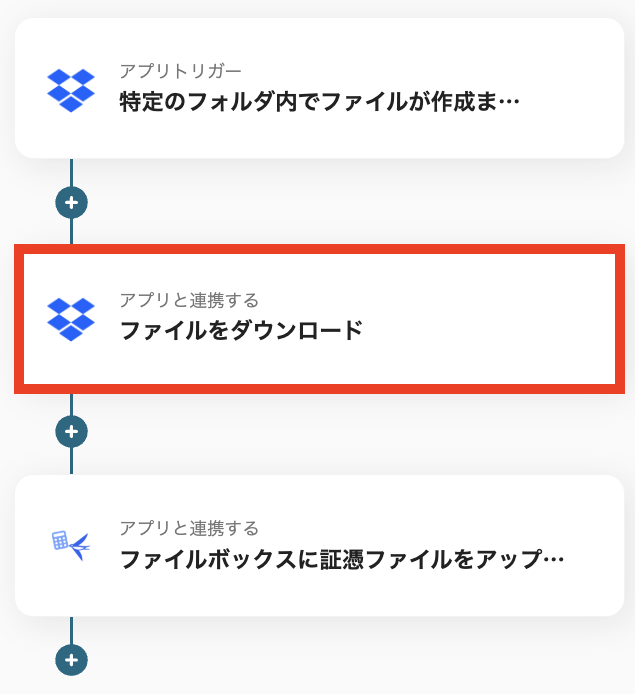 これで、Dropboxのファイルをダウンロードするアクションは設定完了です。