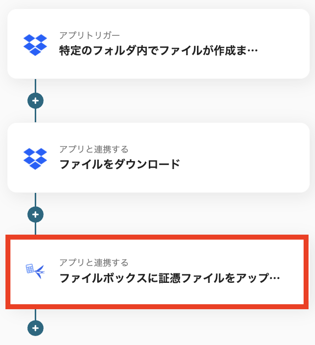 これで、Dropboxでファイルがアップロードされたら、freee会計のファイルボックスに自動で登録されます。