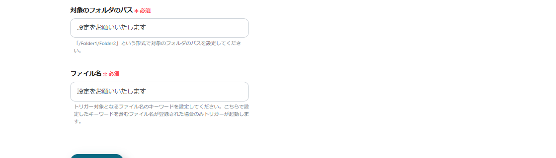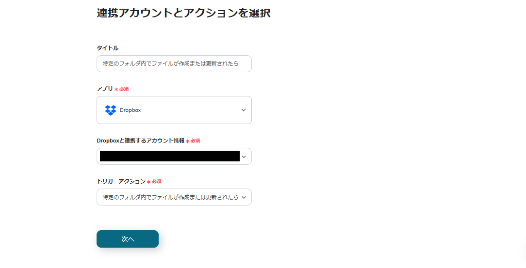 まずは、「特定のフォルダ内でファイルが作成または更新されたら」という項目を設定します。